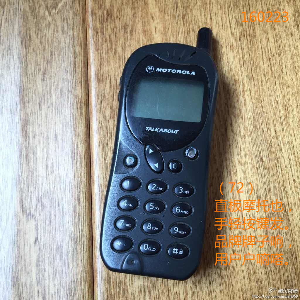 072:直板摩托也,手轻按键发。品牌牌子响,用户户嘀嗒…