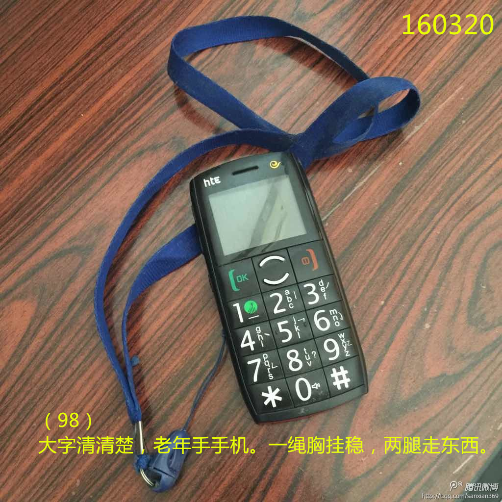 098:大字清清楚,老年手手机。一绳胸挂稳,两腿走东西…